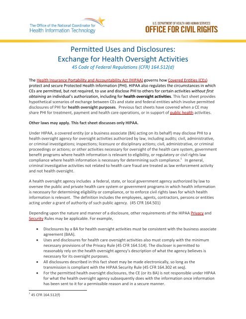 Permitted Uses And Disclosures Exchange For Health Oversight